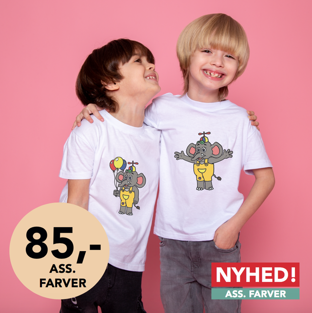 T-shirt kan leveres i str. optil 16 år.